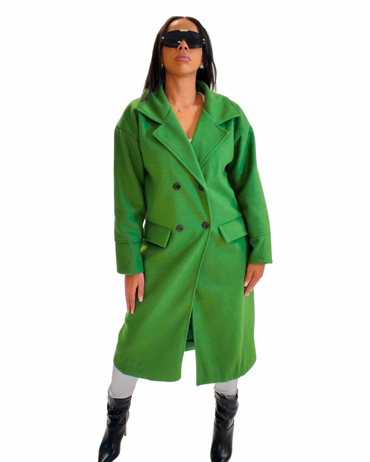 Green Double Breasted Long Trench Coat