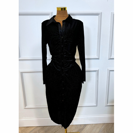 Black Plus Textured Fabric Button Down Dress