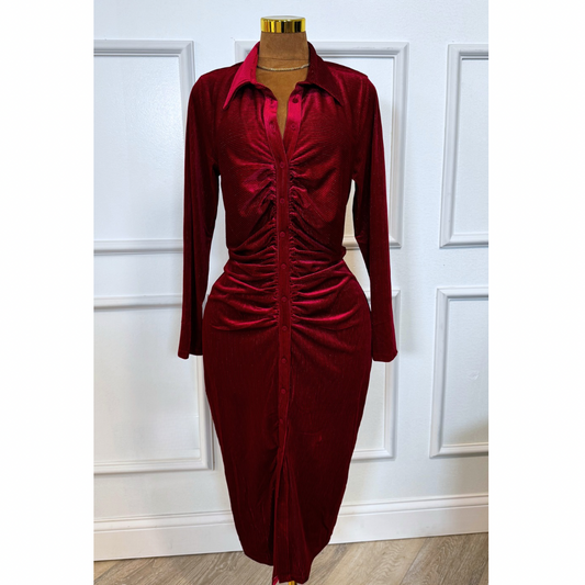 Red Plus Textured Fabric Button Down Dress